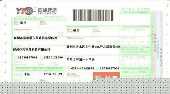 • 圓通速遞快遞打印模板
