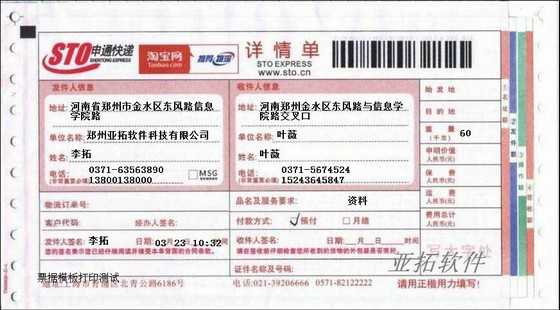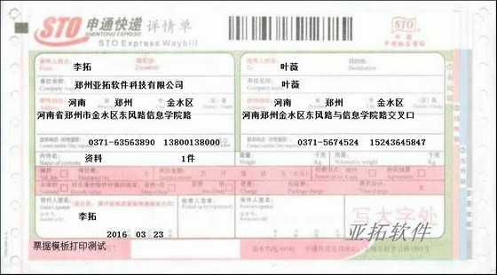 • 申通快遞打印模板