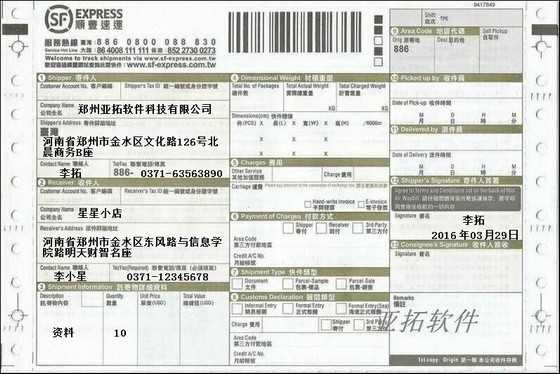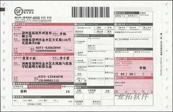 • 順豐速運快遞打印模板