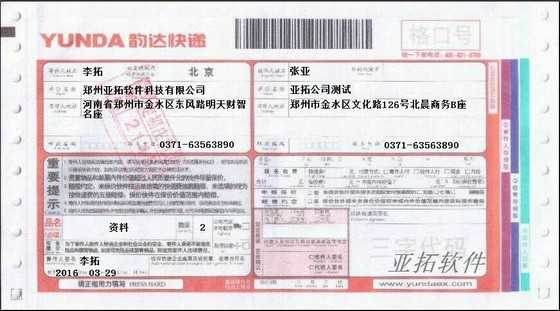 • 韻達快遞打印模板