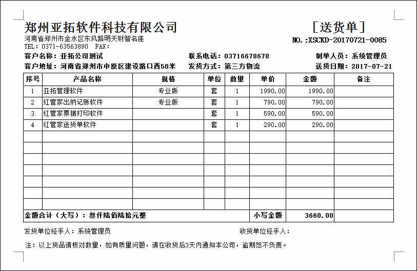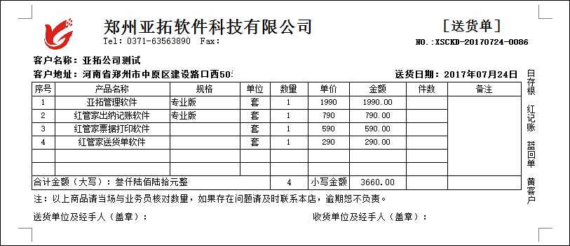 紅管家送貨單打印軟件是一款針對(duì)中小型企業(yè)開(kāi)發(fā)的集送貨管理(發(fā)貨管理)、退貨管理(銷(xiāo)售退貨)、銷(xiāo)售收款(應(yīng)收款管理)等功能為