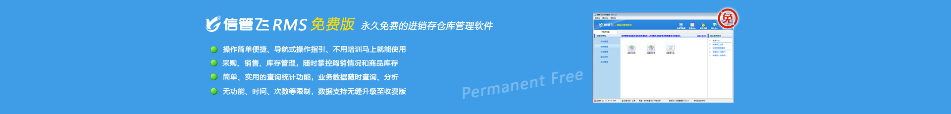 信管飛RMS免費版是亞拓軟件開發(fā)的一款功能簡單、實用的入門級進銷存軟件,軟件主要包括采購管理、銷售管理、倉庫管理功能,可以方便的管理業(yè)務和倉庫庫存。軟件運行穩(wěn)定、數(shù)據安全可靠,并可在業(yè)務發(fā)展壯大時,升級到收費版本的亞拓管理軟件。軟件永久免費,軟件中提供的功能永久使用,沒有功能和數(shù)量限制。