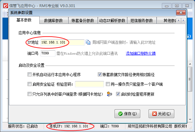 ????(1)應用中心IP地址即主機電腦的IP地址,可以在主機上的應用中心程序上查看(在狀態(tài)欄和系統(tǒng)參數(shù)設置中都可以看到),如下圖所示:
