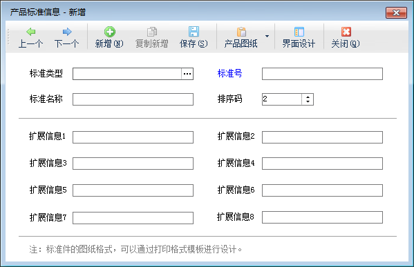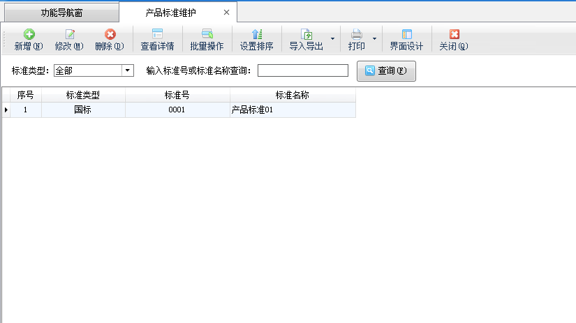 ????在功能導航窗點擊“擴展應用”—》“產品標準維護”可以打開產品標準維護界面,可以維護產品標準。