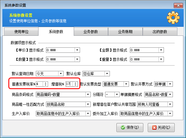 發(fā)票類型:包括填開收據(jù)、普通發(fā)票、增值稅發(fā)票等,如果選擇普通發(fā)票,單據(jù)明細(xì)中的商品稅率默認(rèn)取“系統(tǒng)管理”—》“系統(tǒng)參數(shù)設(shè)置”中配置的普通發(fā)票稅率。如果選擇“增值稅發(fā)票”,則單據(jù)明細(xì)中的商品稅率默認(rèn)取“系統(tǒng)參數(shù)設(shè)置”中配置的增值稅發(fā)票稅率。