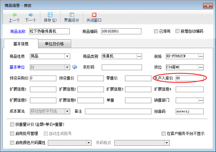 入庫單價:進入倉庫的成本價,軟件默認取商品信息中的“生產(chǎn)入庫價”,也可以設置為根據(jù)原料金額和直接費用等核算出成本價。