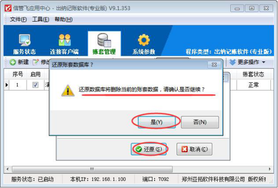 ????3、刪除:刪除賬套后,在賬套管理中則無法再管理此賬套,客戶端也無法連接此賬套。為避免誤操作,刪除賬套并未實際刪除賬套數據文件,如需要徹底刪除賬套文件,請到文件夾中進行刪除。