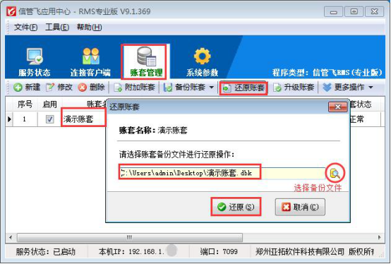 ????一、在信管飛RMS應用中心中如何對賬套進行備份?