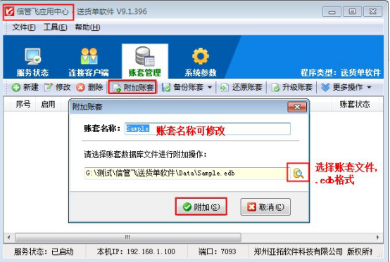 ????解決辦法:出現(xiàn)此種情況需附加下賬套,在賬套管理界面點(diǎn)擊“附加賬套”,選擇賬套文件進(jìn)行附加。如下圖所示,附加后登錄客戶端程序,點(diǎn)擊選擇賬套重新選擇進(jìn)行登錄。
