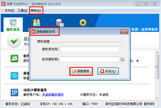 ????解決方法:請(qǐng)?jiān)趹?yīng)用中心程序中,點(diǎn)菜單“幫助”—》“獲取授權(quán)許可”,然后輸入購買的授權(quán)許可信息,點(diǎn)“獲取授權(quán)”即可。獲取授權(quán)成功后,請(qǐng)關(guān)閉應(yīng)用中心程序,重新運(yùn)行應(yīng)用中心程序即可!如下圖所示: