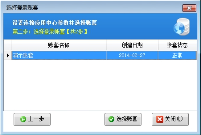 ????二、應(yīng)用中心程序數(shù)據(jù)庫狀態(tài)為:連接成功,打開賬套管理界面,賬套列表沒有賬套。