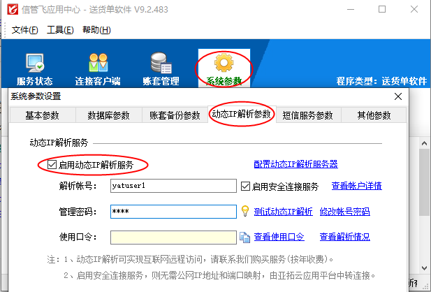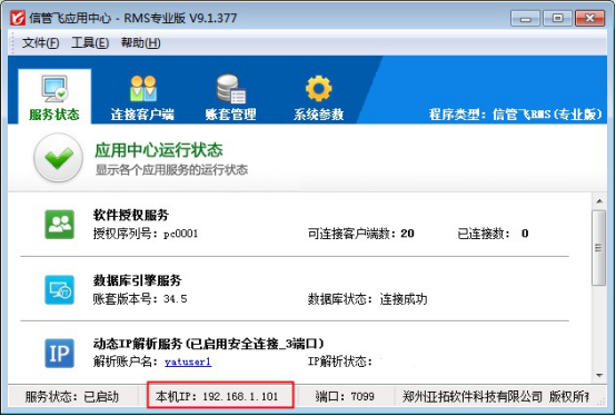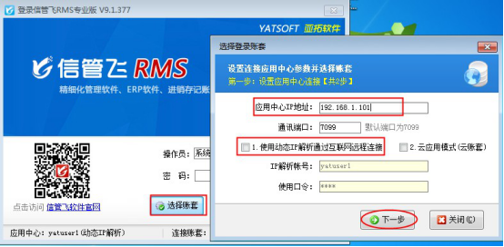 ????動態(tài)IP解析服務(wù)是亞拓軟件開發(fā)的基于互聯(lián)網(wǎng)的遠程連接解決方案,采用專屬安全技術(shù),可以支持網(wǎng)絡(luò)版本在異地連接主機電腦進行共享數(shù)據(jù)使用。動態(tài)IP解析服務(wù)是增值服務(wù),需要購買后分配賬號和密碼。如果客戶解析服務(wù)到期無法使用且到期更換為一個網(wǎng)絡(luò)下使用軟件,則不需要續(xù)費和連接動態(tài)IP解析服務(wù)的賬號登錄,直接連接本地的主機電腦的應(yīng)用中心程序的IP地址進行使用。本文以信管飛RMS軟件進行示范動態(tài)IP解析服務(wù)更換為本地使用如何操作?