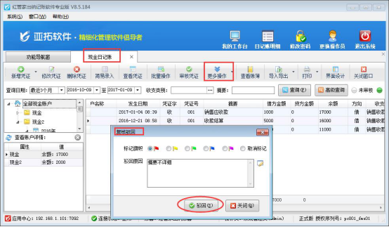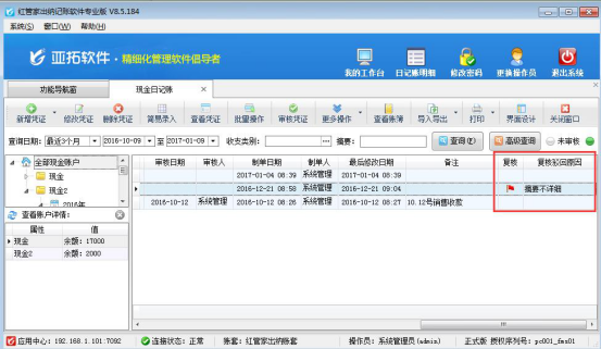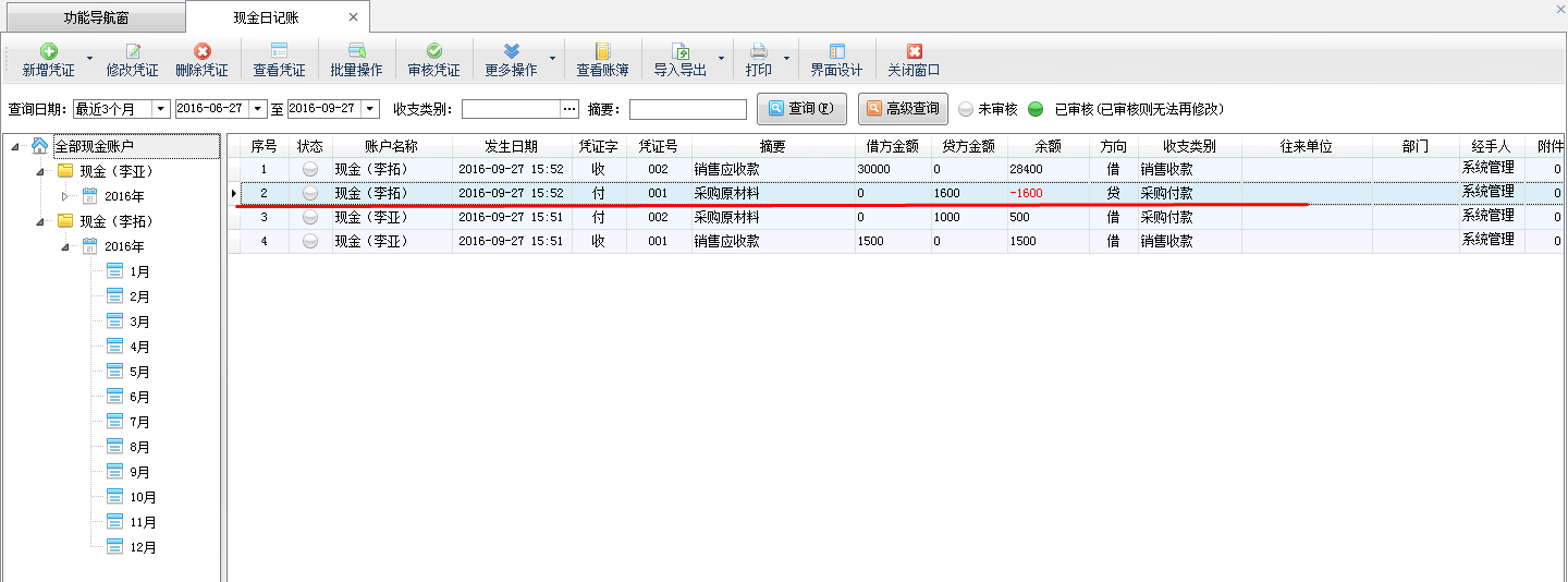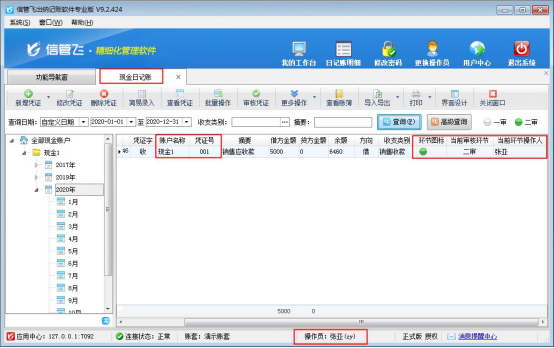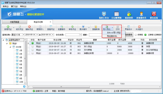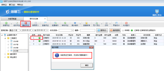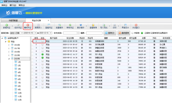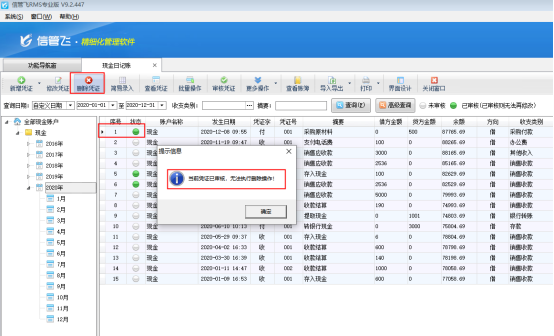 ????信管飛出納記賬軟件標(biāo)準(zhǔn)版和專業(yè)版在新增保存日記賬憑證后都可以直接審核憑證,憑證審核后,不允許直接刪除。客戶如果需要?jiǎng)h除已審核的憑證,需要先反審憑證,再進(jìn)行刪除。下面我們介紹一下在信管飛出納記賬軟件專業(yè)版中如何刪除已審核的日記賬憑證?