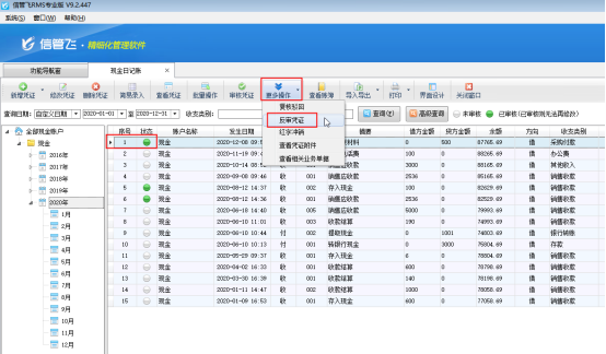 ????信管飛RMS標(biāo)準(zhǔn)版和專業(yè)版都包括登記出納日記賬憑證功能,在新增保存日記賬憑證后都可以直接審核憑證,憑證審核后,不允許直接刪除。客戶如果需要?jiǎng)h除已審核的憑證,需要先反審憑證,再進(jìn)行刪除。下面我們介紹一下在信管飛RMS專業(yè)版中如何刪除已審核的日記賬憑證?