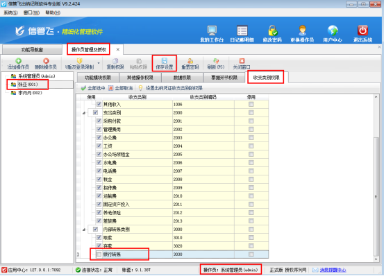 # 6.4.8 出納記賬軟件如何設(shè)置操作員的收支類別權(quán)限?
