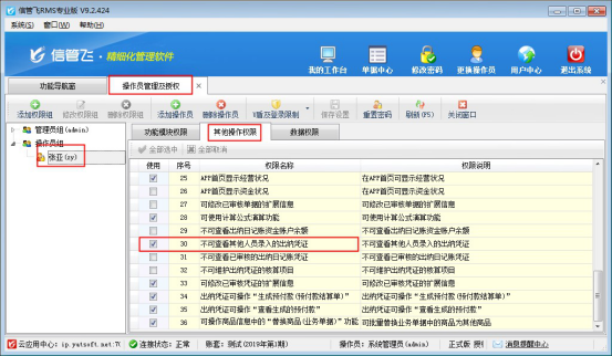 # 6.4.7 信管飛RMS軟件如何設(shè)置操作員不可修改其他人員所開的出納憑證?