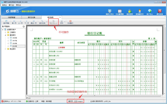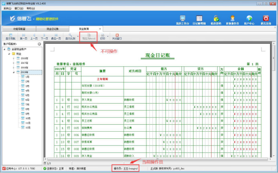 ????信管飛出納記賬軟件允許設(shè)置多個(gè)操作員進(jìn)行登錄軟件,軟件支持將現(xiàn)金日記賬、銀行日記賬以EXCEL的形式導(dǎo)出放到自定義的文件夾內(nèi)以供備份或保存,如果需要設(shè)置操作員不允許導(dǎo)出日記賬列表信息,如何設(shè)置?本文以信管飛出納記賬軟件專業(yè)版為例,示范下如何設(shè)置操作員不可導(dǎo)出日記賬列表信息。