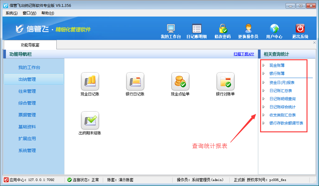 ????歡迎免費(fèi)下載試用這款包含豐富的記賬統(tǒng)計(jì)報(bào)表的出納記賬軟件:信管飛出納記賬軟件。