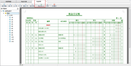 ????(6)查看賬簿:在工具欄點(diǎn)擊“查看賬簿”可以打開并查看相應(yīng)現(xiàn)金賬戶的現(xiàn)金日記賬賬簿報(bào)表。