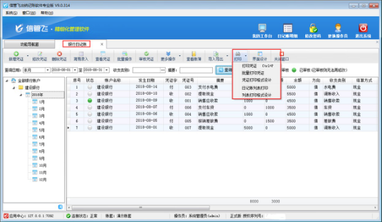 ????紅管家出納記賬軟件標(biāo)準(zhǔn)版和專業(yè)版在新增保存日記賬憑證后都可以直接打印憑證,軟件還支持批量打印憑證,如果您每天錄單數(shù)量較多,為了節(jié)省寶貴時(shí)間提高工作效率,您可以使用批量打印功能。下面我們介紹一下在紅管家出納記賬軟件專業(yè)版中批量打印銀行日記賬憑證的具體的操作步驟。