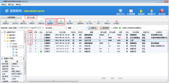 批量操作:在工具欄中點(diǎn)擊“批量操作”按鈕,系統(tǒng)會(huì)進(jìn)行批量操作模式,可以快速選擇多個(gè)銀行日記賬或者銀行對賬單,進(jìn)行批量勾對或批量取消勾對操作。
