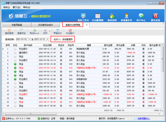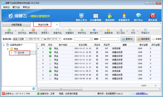 ????歡迎下載試用可日記賬界面結(jié)銷應(yīng)收應(yīng)付款的軟件:信管飛出納記賬軟件