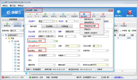 ????信管飛出納記賬軟件中不可以直接修改已審核憑證的擴(kuò)展信息,下面我們介紹一下如何啟用可修改已審核憑證的擴(kuò)展信息功能。