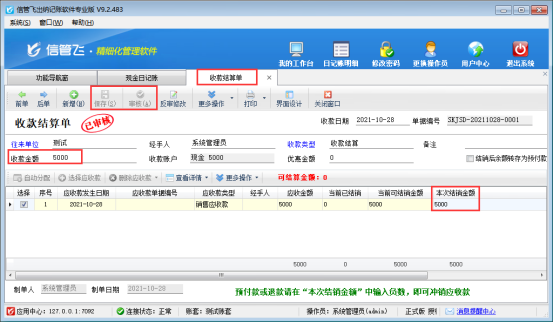 ????收款結(jié)算單保存審核完成后,對應(yīng)的應(yīng)收款管理結(jié)銷狀態(tài)會(huì)變?yōu)椤耙呀Y(jié)銷”,結(jié)銷操作可參考此文章:出納記賬軟件中如何對應(yīng)收款進(jìn)行收款結(jié)算?