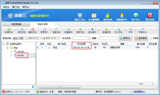 ????軟件支持一直記錄資金賬戶的憑證信息,數(shù)據(jù)自動(dòng)保存,有客戶需要登記新一年日記賬時(shí),打開界面不顯示2022年,不清楚如何顯示出來,本文示范下如何操作?