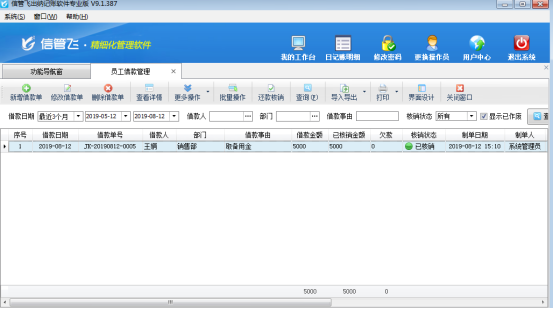 ????歡迎下載試用這款支持員工借款及還款管理的出納記賬軟件:信管飛出納記賬軟件。