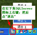 安裝MSDE版本或SQL Server的用戶停止數據庫引擎的步驟:1、先退出正在運行的系統(即紅管家進銷存軟件、出納記賬軟件或其他企業管理軟件)。2、雙擊桌面右下角系統欄的SQLServer圖標,如下圖所示: 3、在SQL Server服務管理窗口,點擊“停止”按鈕即可。 安裝免安裝版SQLServer的用戶停止數據庫引擎的步驟:1、先退出正在運行的系統。2、在桌面右下角系統欄的SQLServer圖標上,右鍵彈出菜單,點擊“退出”即可。如下圖所示: