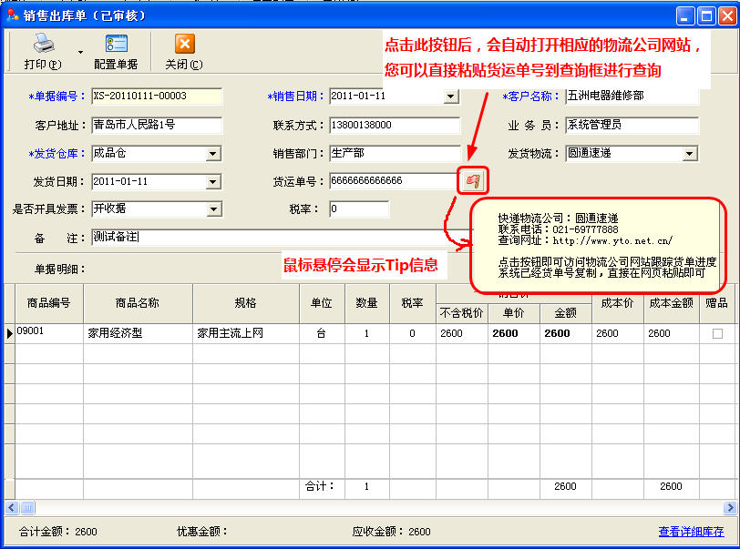 為了方便亞拓軟件客戶查詢跟蹤快遞單情況,我們特意整理了國內主要的快遞物流公司的查詢網址,方便大家查詢,如果你是紅管家倉庫管理軟件、紅管家售后服務管理軟件的用戶,可以直接在銷售出庫單列表和銷售出庫單中一鍵查詢跟蹤貨運單狀況。如下圖所示: 點擊進入:快遞物流公司網站及快遞單查詢網址 主要包括以下貨運單查詢網站:天天快遞單號查詢,匯通快遞單號查詢,韻達快遞查詢單號,ems快遞查詢單號,順豐快遞單號查詢,全一快遞單號查詢,韻達快遞單號查詢,快捷快遞單號查詢,飛康達快遞單號查詢,圓通快遞單號查