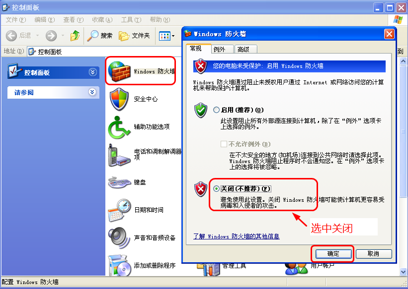 部分客戶反映下載安裝我們的紅管家出納記賬軟件后,在登錄系統時,提示“數據庫連接失敗!請檢查Data目錄下是否有相應的數據庫文件!”或“數據庫連接失敗...請與亞拓軟件聯系”。一、Windows XP操作系統 如果您的操作系統為WinXP,出現“連接數據庫失敗....”的錯誤提示,這個是由于Windows防火墻屏蔽了數據庫引擎的端口導致,您可以將本程序加入例外,或者在控制面板中關閉Windows防火墻。如下圖所示:二、Windows 7操作系統 如果您的操作系統為Win7,出現此錯誤提示是因為