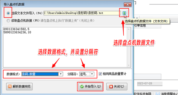 在工業(yè)現代化的今天,避免不了對一些貨物進行盤點,盤點時僅靠人工清點那毫無疑問是費時費力,盤點機的使用可以極大程度上提高數據盤點的效率,可以有效提高人們對于數據分析的效率,更加能夠提高人們工作的質量。 有用戶在使用盤點機盤點數據完成后,需要將盤點數據快速導入到軟件,本篇文章介紹一下信管飛系列軟件如何導入盤點機數據? 演示視頻:信管飛軟件如何導入盤點機數據演示視頻 以發(fā)貨操作為例,盤點機盤點完成后,可以將盤點數據導出,導出格式為TXT文件,如下圖所示。 &