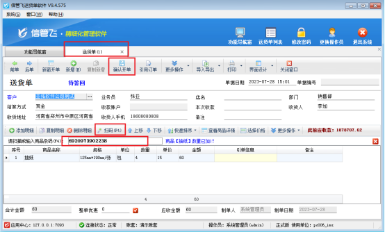 此文章相關演示視頻:掃碼添加明細,如何設置自動累加商品數量演示視頻 信管飛軟件支持掃碼添加商品明細,商品銷售時可以直接通過掃碼的方式添加商品明細錄入銷售單據。有部分客戶在掃碼添加同種商品條碼時開單界面商品數量不會自動累加,本文示范下開單界面掃碼添加明細,如何設置自動累加商品數量? 在功能導航欄,基礎資料--商品信息,需要把商品條形碼提前在商品信息界面錄入維護全面。商品信息界面如圖所示: 在功能導航欄,系統(tǒng)