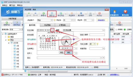 此文章相關演示視頻:如何修改出納憑證發(fā)生日期 信管飛軟件如果發(fā)現憑證錄入的數據有問題,可以點擊菜單欄中的“修改憑證”按鈕,可以對已錄入的憑證進行修改,修改后直接保存即可生效,對于已審核的憑證不支持直接反審修改。部分用戶有時單據審核后發(fā)現發(fā)生日期選擇錯了,此時該如何處理呢?下面以信管飛出納記賬軟件為例,介紹一下修改憑證發(fā)生日期解決方法。 一:日記賬憑證未審核 選中需要修改的未審核憑證,點擊菜單欄“修改憑證”