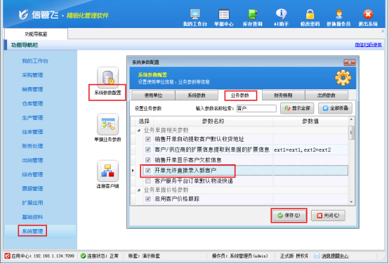 此文章相關(guān)演示視頻:開單界面無法直接錄入新客戶,如何解決? 在如今快節(jié)奏的商業(yè)世界里,高效便捷的業(yè)務(wù)管理軟件是企業(yè)運(yùn)營(yíng)的得力助手。信管飛系列軟件憑借其強(qiáng)大的功能,在采購(gòu)及銷售開單時(shí)支持直接錄入新客戶,大大節(jié)省了業(yè)務(wù)處理時(shí)間,提升了工作效率,深受眾多企業(yè)用戶的青睞。然而部分用戶在使用信管飛軟件時(shí),碰到了無法新增客戶的棘手情況,這無疑給業(yè)務(wù)推進(jìn)帶來了阻礙。本篇文章以“信管飛RMS軟件”為例介紹下何輕松解決這一問題,讓你快速恢復(fù)順暢的業(yè)務(wù)開單流程。&nb