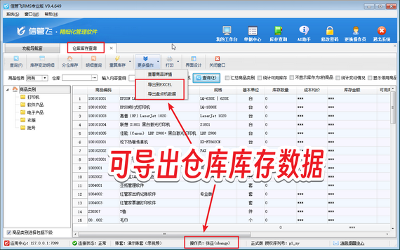 信管飛RMS支持倉(cāng)庫(kù)庫(kù)存查詢功能,倉(cāng)庫(kù)庫(kù)存查詢可以查看存貨的實(shí)時(shí)庫(kù)存情況,包括庫(kù)存數(shù)量、庫(kù)存成本情況等,同時(shí)支持導(dǎo)出倉(cāng)庫(kù)庫(kù)存數(shù)據(jù)。若操作員賬號(hào)登錄軟件無法導(dǎo)出倉(cāng)庫(kù)庫(kù)存數(shù)據(jù),通常源于操作員權(quán)限未啟用,本篇文章為您呈現(xiàn)高效解決方案。 演示視頻觀看鏈接:操作員無法導(dǎo)出倉(cāng)庫(kù)庫(kù)存數(shù)據(jù),如何解決演示視頻 在功能導(dǎo)航窗點(diǎn)擊“系統(tǒng)管理”—》“操作員及授權(quán)”打開操作員管理及授權(quán)界面,選擇操作員賬號(hào)“張亞”,然后在其右側(cè)的功能模塊權(quán)限內(nèi)選擇“庫(kù)存查詢”,將倉(cāng)庫(kù)庫(kù)存查詢的“導(dǎo)出”權(quán)限勾選上,然后保存權(quán)限設(shè)置