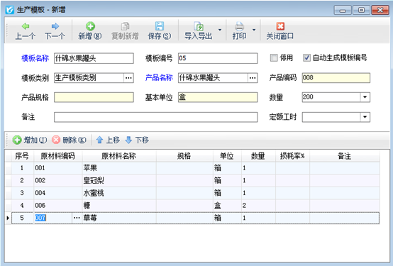 圖 3 新增生產(chǎn)模板的界面