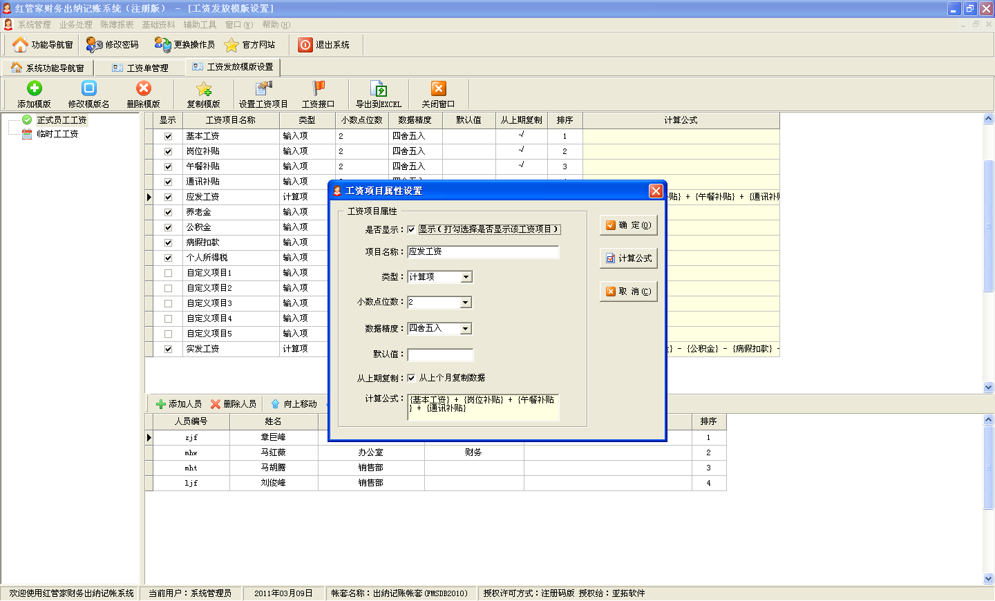 工資項目可自定義,并可設置計算公式
