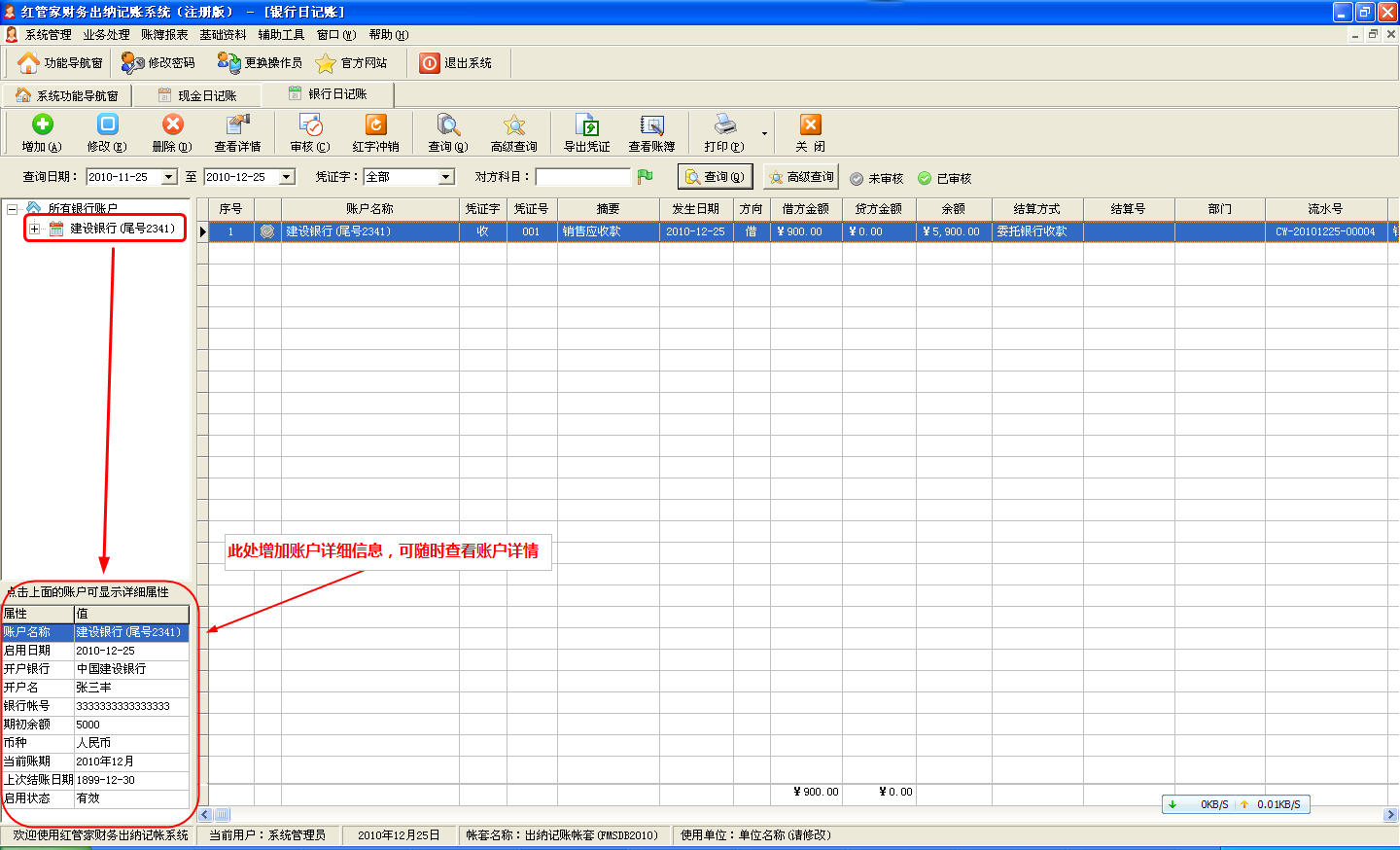出納軟件更新: 亞拓軟件最新發布《紅管家財務出納記賬系統》發布V3.4,這個版本中我們增加了掃描和導入憑證附件(相當于手工粘貼單據)、按照核算項目統計、日記賬列表查看賬戶詳情等功能,使之更符合客戶需求。 下載地址:http://www.52kfb.com/download/FPSetup.exe更新日期:2010.12.25程序版本: V3.4(B