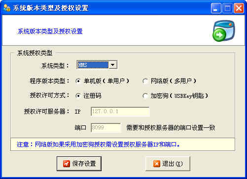 系統(tǒng)版本類型及授權類型設置工具,可以更改亞拓軟件產(chǎn)品的授權類型。主要包括程序版本類型:單機版(單用戶)、網(wǎng)絡版(多用戶);授權許可方式:注冊碼版、加密鎖(USB key);授權許可服務器IP地址及端口號。