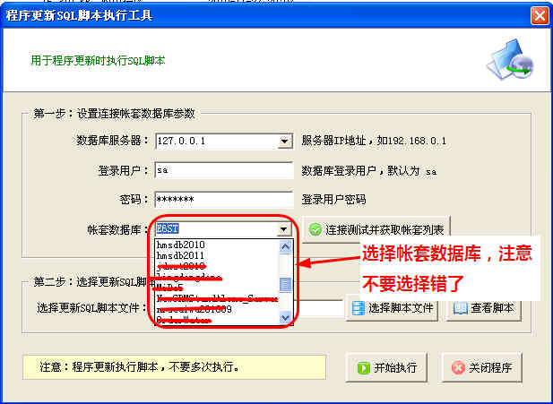 第二步、點擊“程序更新SQL腳本執行工具”,進入更新腳本窗口: