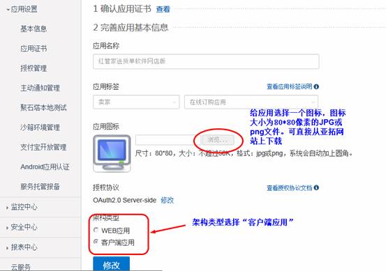 應用名稱:這個可以任意填寫,比如“藍風箏網店的訂單接口”。