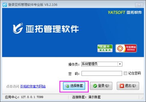 打開客戶端登錄界面的“選擇賬套”按鈕,然后勾選“啟用動態(tài)IP解析”,填寫IP解析用戶名和密碼,點擊“下一步”,進入選擇賬套的界面,選擇賬套后回到登錄界面,選擇操作員并輸入密碼,進入軟件首頁。