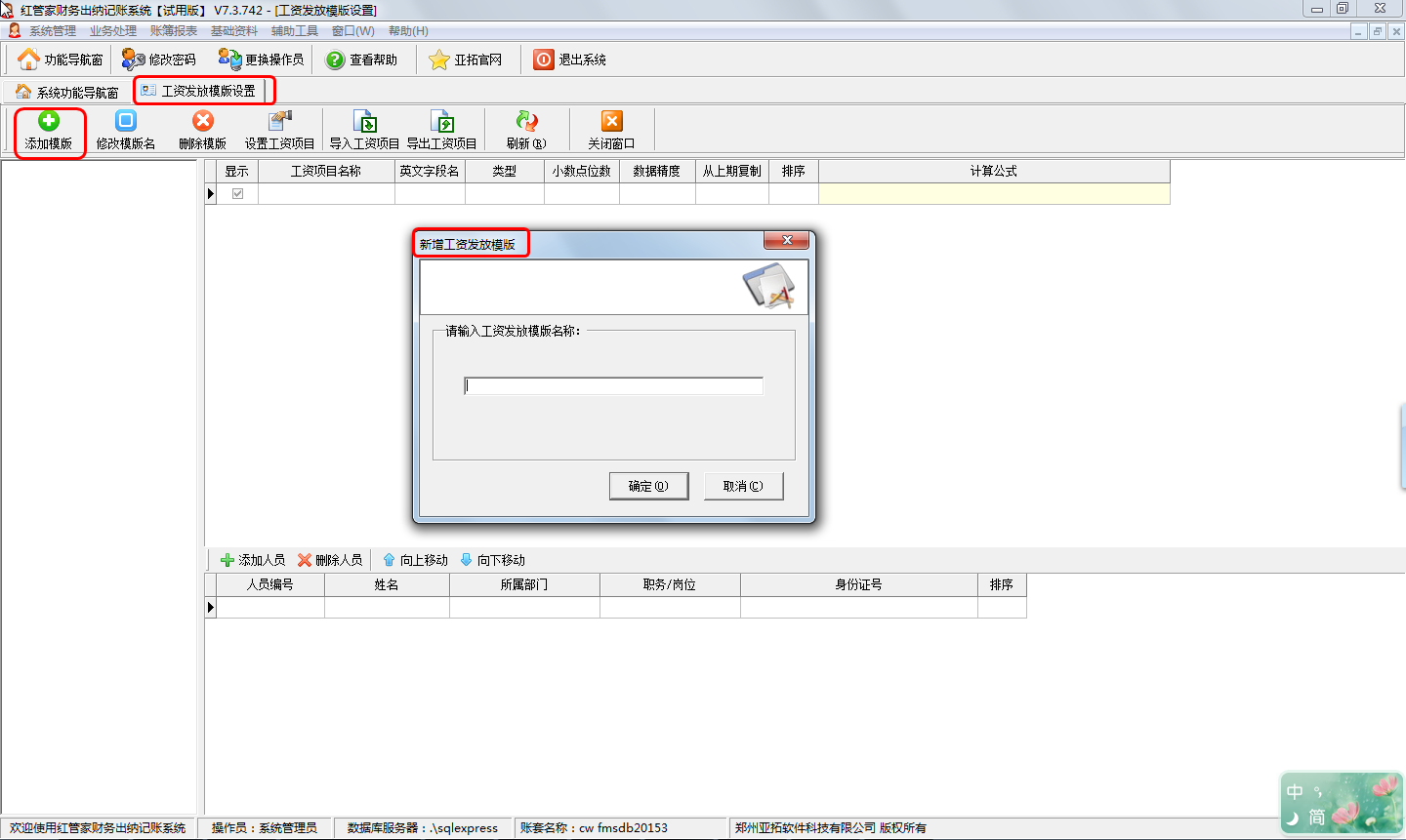 亞拓軟件開發的紅管家財務出納記賬軟件含有工資管理的功能(工資管理軟件),可以對公司內部員工的工資進行管理,可是多數用戶都不清楚如何在出納記賬軟件內對員工工資進行管理,下面我們就詳細介紹下紅管家財務出納記賬軟件中如何實現對公司內部員工工資進行管理。