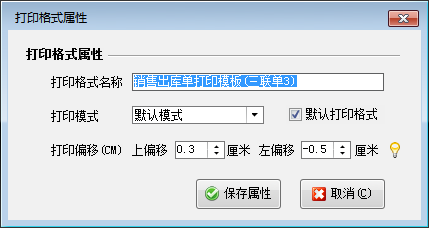 修改格式屬性:點(diǎn)“屬性”按鈕可以修改選中的打印格式模板的屬性。其中打印模式包括默認(rèn)模式、連續(xù)打印模式和填充空行模式。
