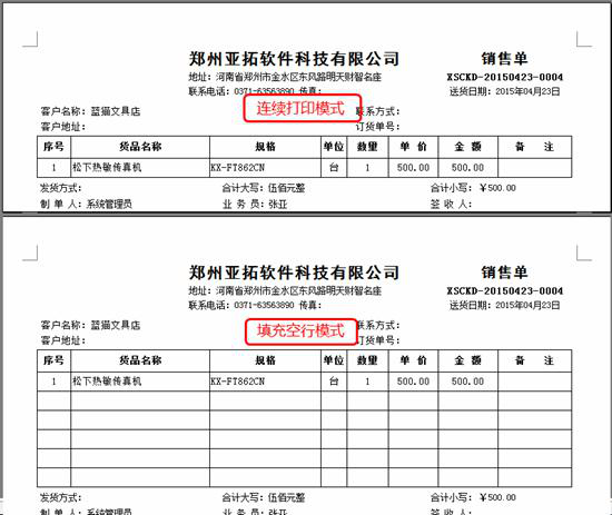 下圖為采用“連續(xù)打印模式”和“填充空行模式”打印出來(lái)的內(nèi)容的不同之處: