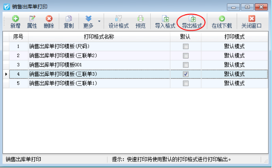 導(dǎo)出打印格式:可將選中的打印格式模板導(dǎo)出為文件。打印格式模板文件為特殊格式的文件,無(wú)法直接打印,只能在軟件中進(jìn)行導(dǎo)入。