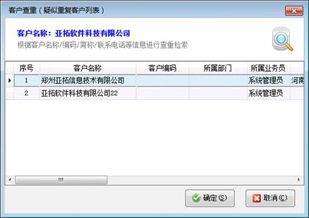 (4)在潛在客戶資料錄入時,由于潛在客戶的來源比較多,信息一般未經核實或確認,最經常出現的問題,就是客戶資料錄入重復。軟件提供客戶查重功能,可根據客戶名稱/簡稱/聯系電話/手機等條件進行信息檢查。點“更多操作”—》“客戶名稱查重”可以檢測是否有疑似重復的潛在客戶資料。如下圖4所示:
